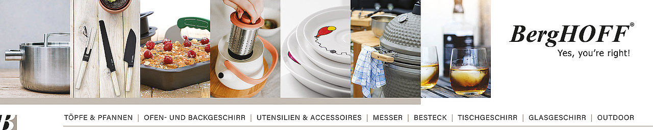 BergHOFF bietet eine komplette Kochausstattung und Geschirr, Produkte, welche die Sinne eines Kochs perfekt ergänzen. Die Artikel kombinieren zeitlose Klasse und Funktionalität in den Kategorien: Kochgeschirr, Besteck, Messer,Porzellan, elektronische Geräte und Accessories.