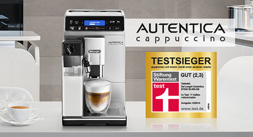 Milchschaum und Geschmack der Autentica Cappuccino überzeugen die Tester. Mit der Gesamtnote Gut (2,3) hat der Milchschaum-Spezialist unter den 11 getesteten Modellen den ersten Platz belegt.