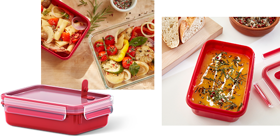 Immer mehr Mahlzeiten werden außer Haus eingenommen – bei der Arbeit, auf dem Weg in die Stadt oder auf Reisen. Das neue CLIP & GO Sortiment bietet für die beliebtesten Speisen „to go“ die richtige Lösung. Ob Salat, Joghurt, Sandwiches oder eine ganze Mahlzeit – mit praktischen Einsätzen und zusätzlichen Funktionen gibt es für jede Speise die richtige Dose. So bleibt der Salat dank separater Einsätze für Toppings und Dressing knackig frisch und das morgendliche Müsli wird mithilfe der „Knick-Ecke“ erst kurz vor dem Verzehren mit dem Joghurt vermengt. Schnell in die Tasche oder den Rucksack verstaut, halten sie 100 % dicht - keine Gefahr von Auslaufen.