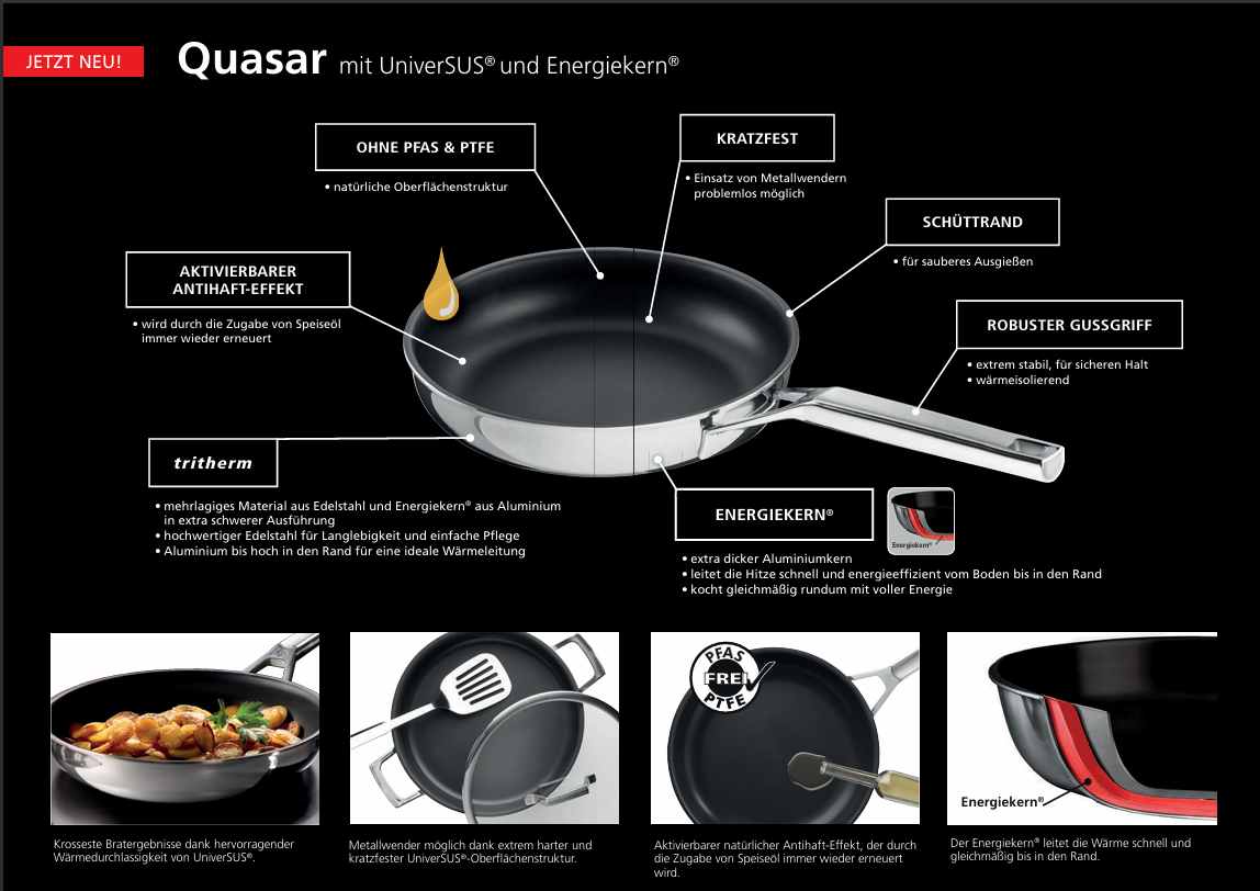 **Entdecke die Quasar-Pfanne mit UniverSUS®-Oberfläche – exklusiv vor Ort im starken Fachhandel. Lass dich beraten – von Herzen gern!**